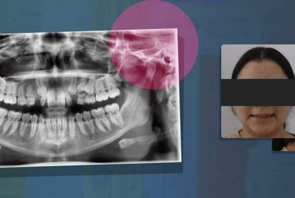 Paciente femenina de 43 años acude a consulta por un dolor difuso en la zona anterior izquierda del maxilar superior, refiriendo molestia por las noches y de forma aleatoria en el transcurso del día. Los hallazgos clínicos revelaron múltiples restauraciones de resina compuesta. El órgano dentario #22 resultó positivo a las pruebas pulpares. El examen radiográfico reveló una restauración extensa mal ajustada he infiltrada en la cara mesial, abarcando el tercio medio a incisal comprometiendo el complejo dentino pulpar. Con base a lo anterior se diagnostica una pulpitis irreversible. Fig. 1
